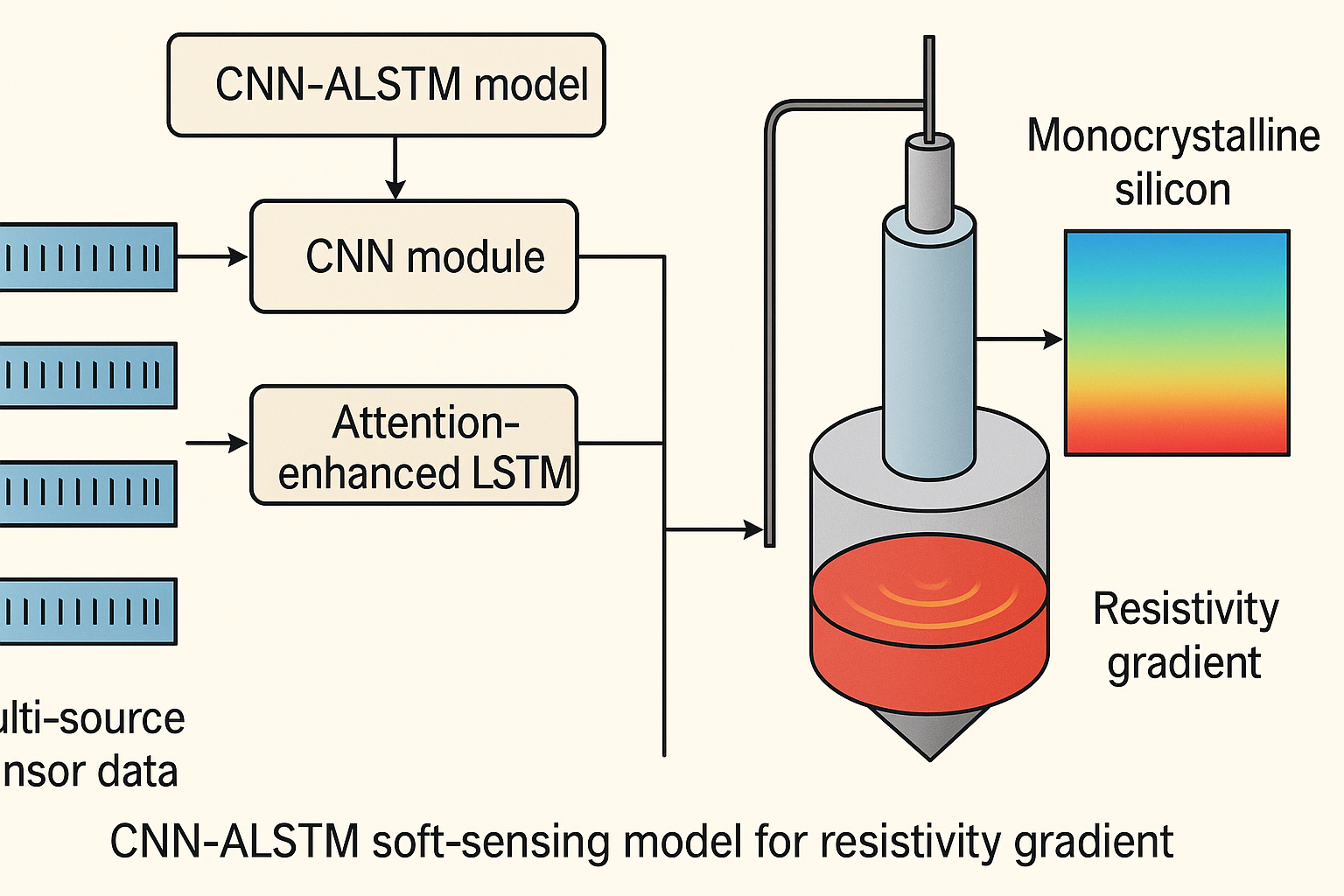 This study addresses the challenge of real-time resistivity gradient measurement in the Czochralski (CZ) silicon production process. Due to the inability to directly measure this parameter, we propose a CNN-ALSTM soft-sensing model that enhances traditional LSTM by integrating convolutional neural networks (CNN) and an attention mechanism to overcome time lag variations during silicon pulling. The CNN module extracts spatial features from multi-source sensor data, while the attention-enhanced LSTM (ALSTM) dynamically adjusts historical parameter weights, enabling accurate resistivity gradient prediction. Experiments with real production data show that CNN-ALSTM outperforms SVR, FNN, and RNN, improving prediction accuracy by 11.76%, 16.67%, and 21.05%, respectively. This soft-sensing approach enhances real-time monitoring and optimization of monocrystalline silicon growth.