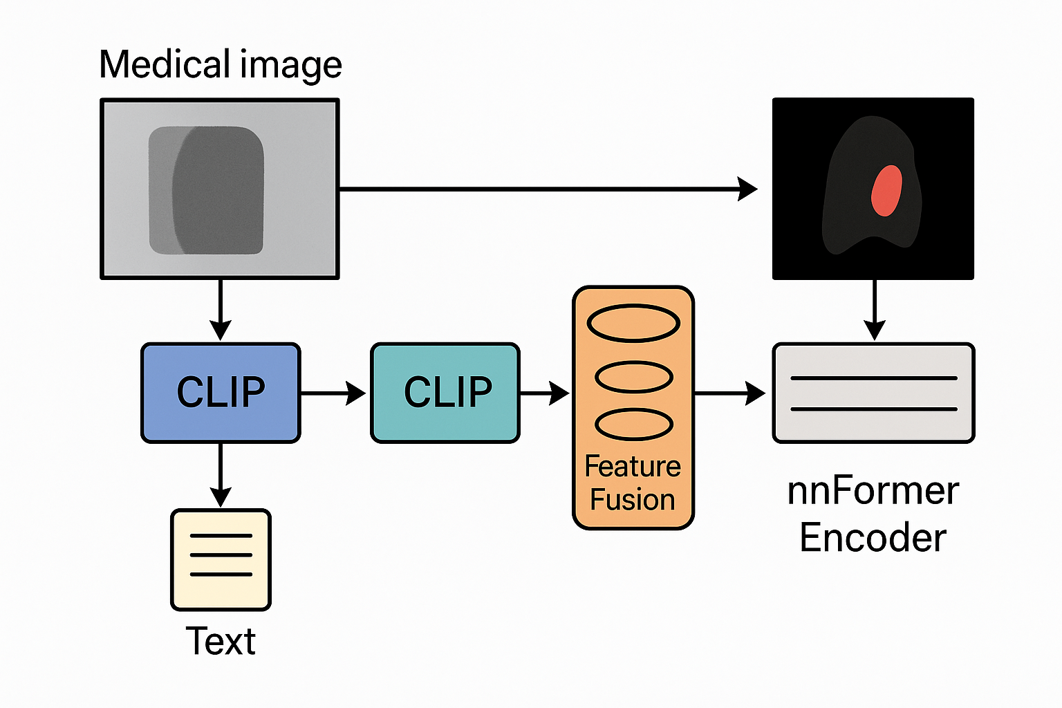Image segmentation is attracting increasing attention in the field of medical image analysis. Since widespread utilization across various medical applications, ensuring and improving segmentation accuracy has become a crucial topic of research. With advances in deep learning, researchers have developed numerous methods that combine Transformers and convolutional neural networks (CNNs) to create high accurate models for medical image segmentation. However, efforts to further enhance accuracy by developing larger and more complex models or training with more extensive datasets, significantly increase computational resource consumption. To address this problem, we propose BiCLIP-nnFormer, a virtual multimodal instrument that leverages CLIP models to enhance the segmentation performance of nnFormer (a medical segmentation model). Since two CLIP models (PMC-CLIP and CoCa-CLIP) are pre-trained on large datasets, they do not require additional training, thus conserving computation resources. These models are used offline to extract image and text embeddings from medical images. These embeddings are then processed by the proposed 3D CLIP adapter, which adapts the CLIP knowledge for segmentation tasks by fine-tuning. Finally, the adapted embeddings are fused with feature maps extracted from the nnFormer encoder for generating predicted masks. This process enriches the representation capabilities of the feature maps by integrating global multimodal information, leading to more precise segmentation predictions. We demonstrate the superiority of BiCLIP-nnFormer and the effectiveness of using CLIP models to enhance nnFormer through experiments on two public datasets, namely the Synapse multi-organ segmentation dataset (Synapse) and the Automatic Cardiac Diagnosis Challenge dataset (ACDC), as well as a self-annotated lung multi-category segmentation dataset (LMCS).
