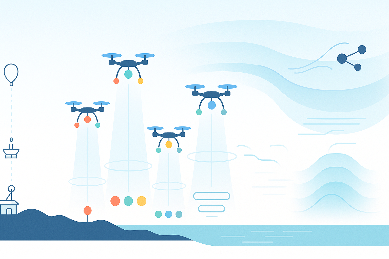 Traditional weather observation methods have limitations in detecting low-altitude, small-scale areas and sudden weather events. They often have insufficient coverage, slow response, or high costs. Multi-rotor unmanned aerial vehicles (UAVs), with their strong vertical take-off and landing ability, precise hovering, flexible movement, and ability to carry various small sensors, are gradually becoming key tools to fill these gaps and build three-dimensional weather observation networks. They show important value in medium- and small-scale weather monitoring and emergency weather support. This paper reviews the main sensors for multi-rotor weather drones, their operating modes, and key supporting technologies, summarizes the current state of technology, and provides references for future development.